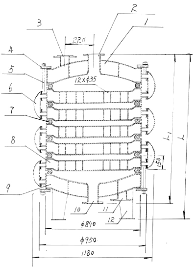 7 | 橡膠四氟墊 | φ860×φ800每片 | 1 | 11 | 2150 | 2060 | 1245 |